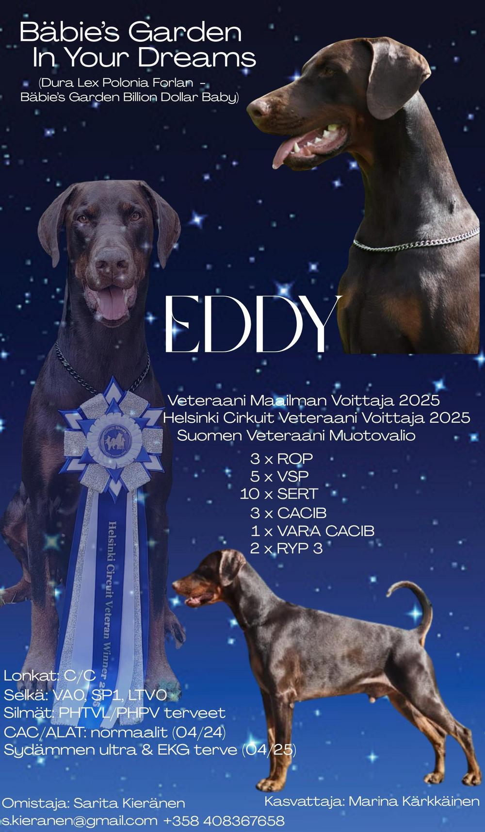 Ilmoita koirasi listalle sähköpostilla jalostus@sdy.fi. Viestiin valokuvan lisäksi koiran virallinen nimi, terveys- ja muut mahdolliset tulokset sekä omistajan yhteystiedot.